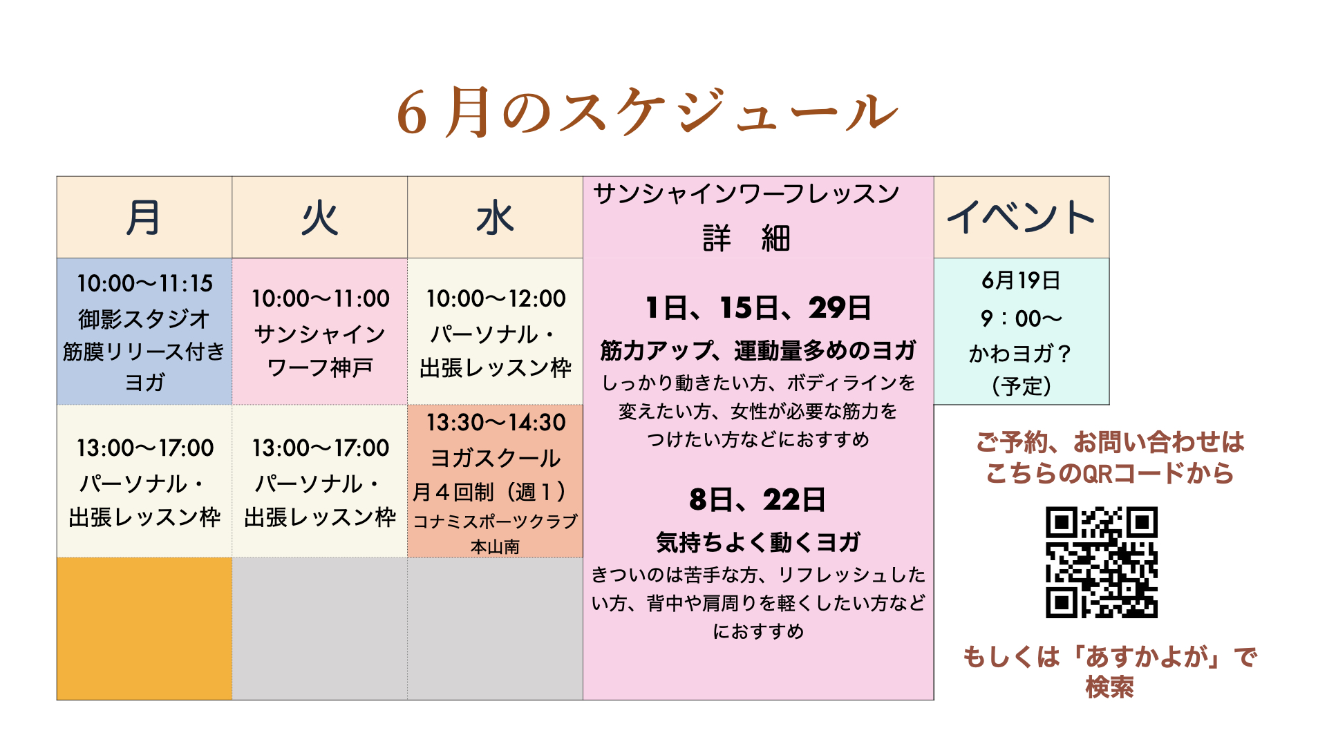 ・6月からコナミスポーツクラブ本山南での少人数制ヨガスクールがスタートします